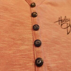 Harley Davidson Pink Label Crystal Button Long Sleeve Henley Women’s Size 2XL