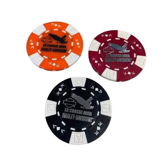 Harley Davidson Poker Chips Dealer Lot of 3 La Crosse Area Onalaska WI