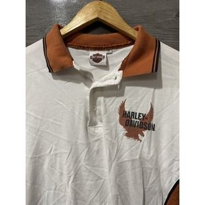Harley Davidson Polo Men's Size XL White Orange Short Sleeve Collared Smoky Mtns