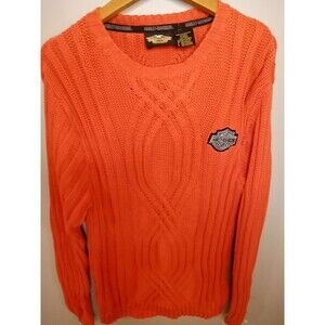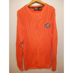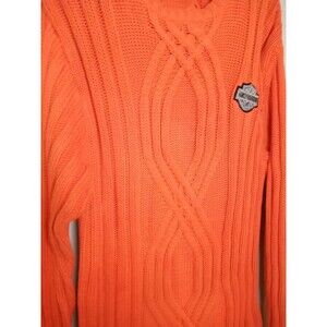 Harley Davidson Pull Over Sweater Mens Heavy Cable Knit Orange Small