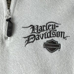 Harley Davidson Quarter Zip Pullover Fleece Sweater Womens S White Pocketed