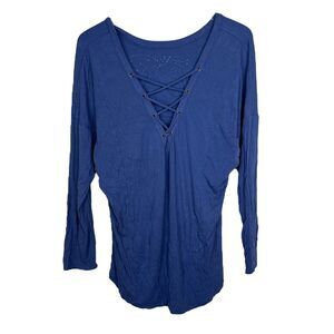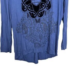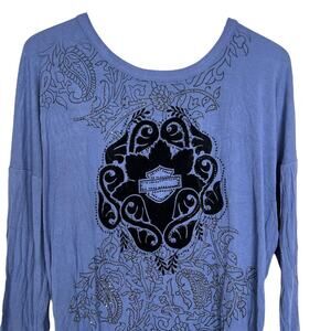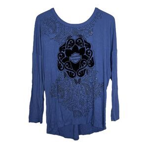 Harley Davidson Relaxed Floral Graphic Studded Faux Lace Up Top Shirt Blue Large
