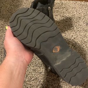 Worn a few times, just never fit me right. Could use new laces and a good cleaning as they have been in storage. Few scuffs on the toes, but nothing really noticeable. Zipper on inside ankle. Slight melt on inside of right sole (last picture)