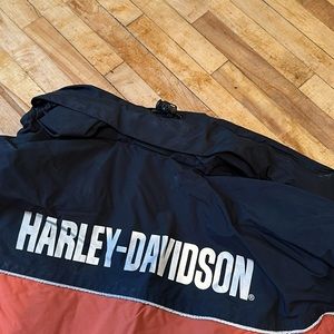 This is a semi lightweight jacket. Has a hood that can also be rolled away.