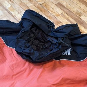 It is new with tags but was bought with the marks on the back. There is also some other dirt spots but those will wash off, it’s just from being in storage.