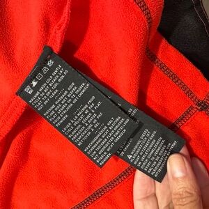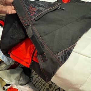 Eye-catching Harley Davidson black/grey design riding jacket with a contrasting red fleece hooded liner. Liner zips in and out for easy use or removal for warmer days. Can be warn by itself too. Features stylish stitching details. Like new condition!