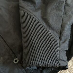 Black with red and white detailing. Nylon exterior with quilted interior. 6 zipper pockets. Double zipper in the front. Ribbed sleeves. Perfect condition. Open to offers. Pet free and smoke free home.