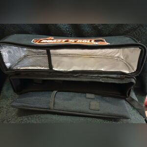 Great insulated tote bag to carry your coffee, lunch or.... while you're on the road. Has elastic straps and pockets to hold cups, etc. Zipper pulls broke, but still zips perfectly (see photos). 12.00 or FREE with any 12.00+ purchase!