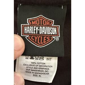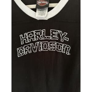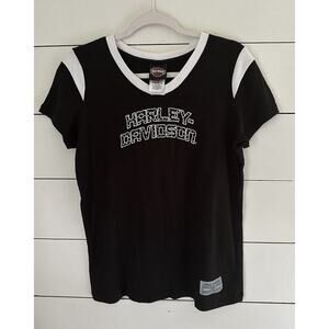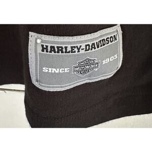 Rev up your wardrobe with this stunning Harley-Davidson shirt in black. The shirt features a V-neckline and short sleeves, making it perfect for casual occasions. The pullover closure ensures a comfortable fit, while the XL size is perfect for women who prefer regular size type.