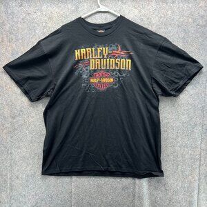 Harley Davidson Shirt Men 2XL Black Red Orange Motorcycle Crewneck Spell out