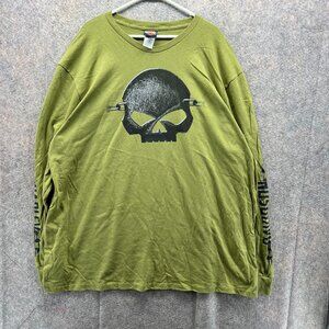 Harley Davidson Shirt Men 4XL Green Motorcycle Skull Crewneck Long Sleeve 2018