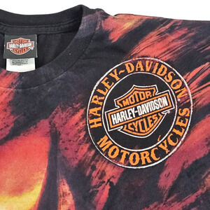 The Harley Davidson clown t-shirt is in the colors black and orange.
