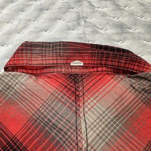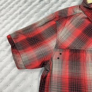 Harley Davidson Shirt Men Large Gray Red Buffalo Plaid Flannel Short Sleeve Logo
