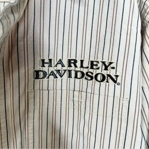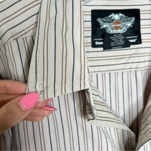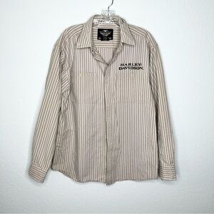 Harley Davidson Shirt Men Medium Brown Tan Stripe Embroidered Button Up EE
