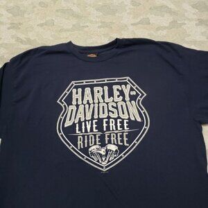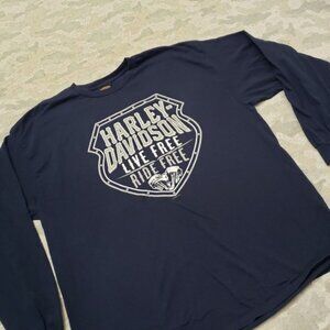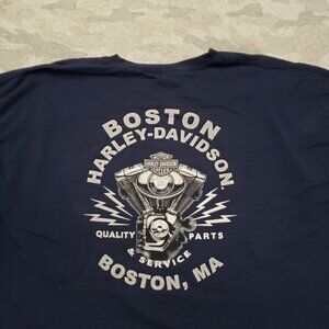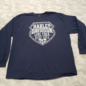 Harley Davidson Shirt Mens 2XL Blue Pullover Long Sleeve Motorcycle Boston