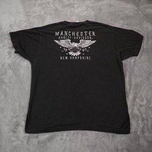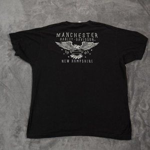 Harley Davidson Shirt Mens Black logo Biker Ride Script Manchester NH Laconia