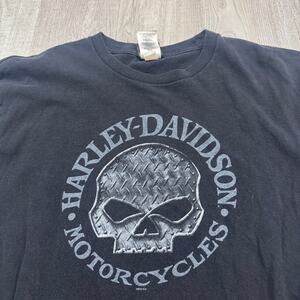 Harley Davidson Shirt Men's Extra Large Black Skull Grunge Docs Biker Motorcycle