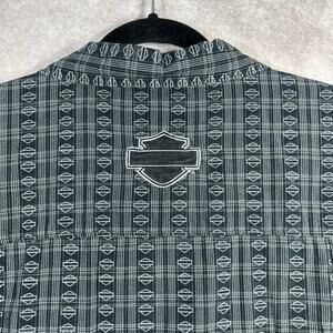 Harley Davidson Shirt Mens Medium Black Logo Print Button Up Short Sleeves Biker Motorcycle