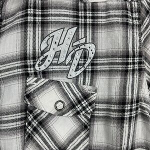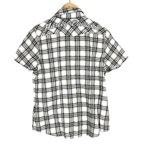Harley Davidson Shirt Size Small Womens Black Plaid Snap Short Sleeve Rhinestone