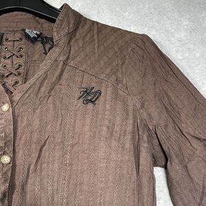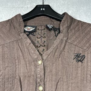 Harley Davidson Shirt Women Small Dark Brown Lace Up Back Button Up Embroidered