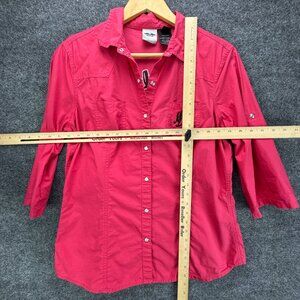 Harley Davidson Shirt Womens Large Pink Pearl Snap Embroidered Studded Bikercore