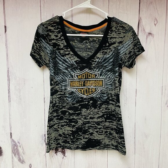 Harley Davidson Shirt Womens Small Cool Springs Franklin TN Shirt Gray Bling