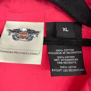 Harley Davidson Shirt Womens XL Red Pearl Snap Spell Out Studded Moto Biker Chic
