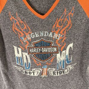 Harley Davidson Shirt Women's medium Heathered Grey Orange Short Sleeve Cotton