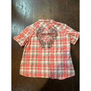 Harley Davidson Short Sleeve Plaid Button-Up Shirt - Size medium