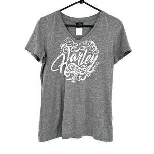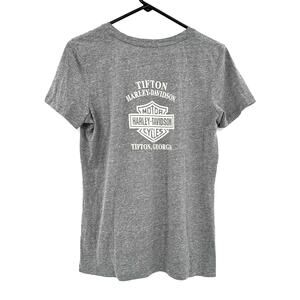 Harley Davidson Size Medium Short Sleeve Gray T-Shirt Tifton GA V Neck Graphic