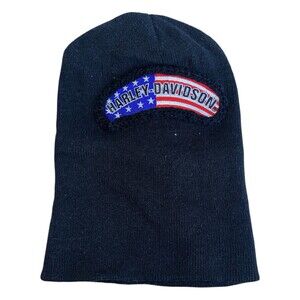 Harley Davidson Skull Knit Cap American Flag Patch Black Beanie