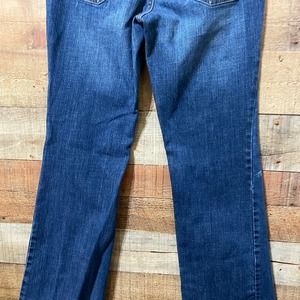 Boot cut women's jeans. 5 pocket styling. Button & zip closure. Fitted through the seat and thighs with a boot cut flare. Contrast stitching. Size 8. Measures 15" across at waist. 9" rise. 31" inseam. No stretch, heavier denim. Great condition with no flaws.