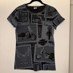 Harley Davidson Smokey Mountains Womens Grey Motorcycle Pattern Tee Size Medium