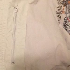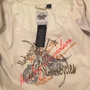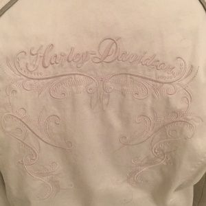 Authentic Harley Davidson light weight jacket. Has 4 outside pockets and two inside. Jacket is lined. Like new. Only wore a couple of times. Approximately 24” long. Color is a light beige