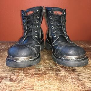 Harley Davidson Women's Stealth Riding Boot in color Black. Womens size 9.5. Lace up with side zipper. Full grain leather upper with TecTuff abrasion resistant overlays. INdustrial metal toe wnad heel plate hardwear with a flying "V" harley-davidson emblem. 1.5" Heel. 5.25" Shaft. Rubber sole. Style No: 81641. Wear as seen in pictures.