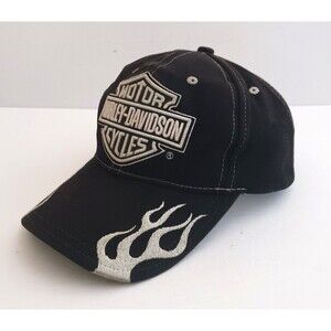 The Harley Davidson Strapback Black Cotton Twill Hat with Flames and Bar N Shield Logo is a stylish and collectible accessory perfect for fans of American motorcycles. Made by Harley-Davidson , this hat features a classic design with a fiery twist - the flames detail adds a touch of edginess to the iconic Bar N Shield logo. The strapback adjustment ensures a comfortable and secure fit for all wearers, making it a must-have for any Harley-Davidson enthusiast looking to showcase their love for the brand. Pre owned, clean, no stains. Ships boxed.