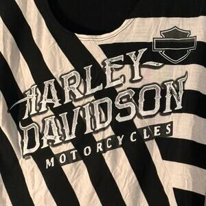 Harley Davidson Striped T-shirt Womans Large Biker Motorcycle Black White