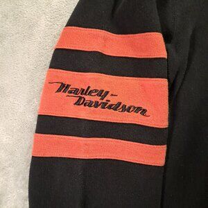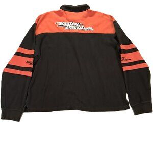 Harley Davidson Sweater Men 2XL XXL 1/4 Button Black Orange Colorblock Embroidered 100% Cotton