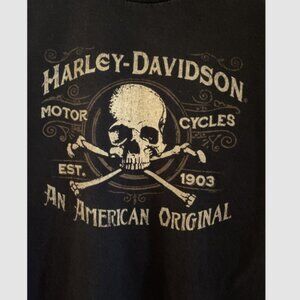 This Harley-Davidson T-Shirt in size M is an American original made in Chester Springs, PA. It features the iconic Harley-Davidson make, making it a collectible piece for motorcycle enthusiasts and fans of American transportation. The shirt embodies the brand's legacy and heritage, perfect for those looking to showcase their love for Harley-Davidson in a stylish and comfortable way. An Americal original, Chester Springs, PA, store is closed so it is unique. Very good condition, not faded, no damage or spots, warn very few times Please check my other Harley Davidson listings