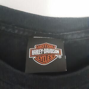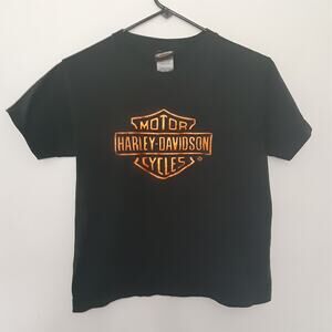 Harley Davidson T Shirt Black Orange Logo Motorcycle Womens Size M Biker Tee
