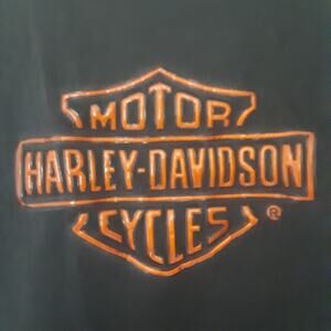 The Harley Davidson T Shirt in black with orange logo is a stylish and comfortable top for women who love motorcycles and the biker lifestyle. The shirt showcases the iconic Harley Davidson brand logo in vibrant orange, perfect for those looking to make a bold statement with their outfit. The size M fits most women comfortably, making it a versatile and trendy addition to any wardrobe.
