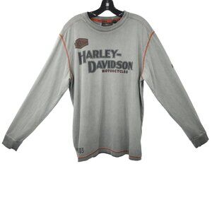 Harley Davidson T Shirt Mens L Double Sided Distressed Gray Screaming Eagle Long Sleeve Crewneck