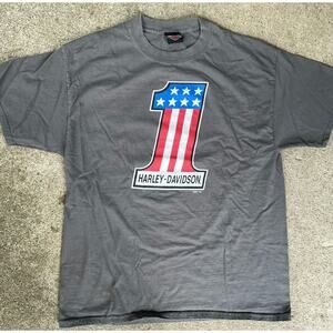 Harley Davidson T Shirt Mens Large Gray Patriotic Hunters Moon Lafayette Indiana