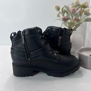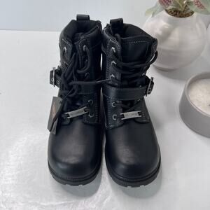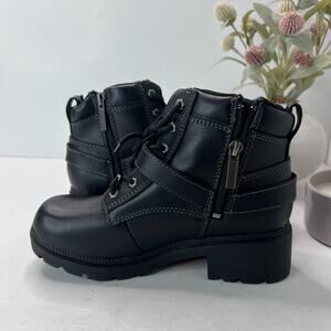 Harley Davidson Tegan Leather Harness Lace Up Ankle Boots Black Women 6.5M NWOB