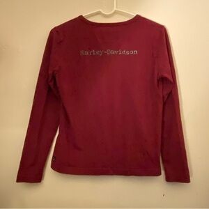 Harley Davidson Top Women’s Size Small Long Sleeve V Neck Pull Over Red