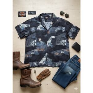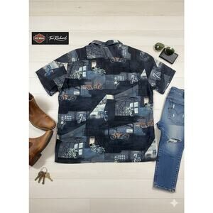Add a touch of island flair to your wardrobe with this Harley Davidson Tori Richard button-up shirt! This unique piece combines the iconic Harley Davidson style with Tori Richard's signature Hawaiian design.