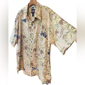 Harley Davidson Tori Richards XL Rare Beige Tropical Motorcycle Palm Print Shirt
