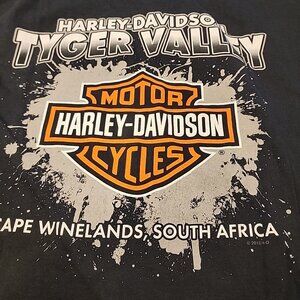 The Harley Davidson Tyger Valley Cape Winelands South Africa T-shirt in size 3X is a black, short-sleeve shirt made of cotton. Featuring a crew neck and regular fit, this shirt is designed for men who appreciate the motorcycle and biker theme associated with the Harley-Davidson brand. Perfect for those looking for a comfortable and stylish addition to their wardrobe, this t-shirt is a great choice for fans of Harley Davidson and the biker lifestyle.