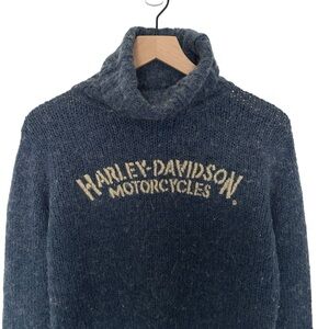 Harley Davidson Vintage Blue Logo Turtleneck Sweater