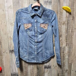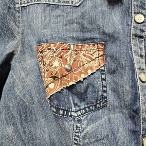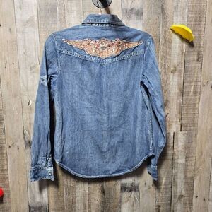 Harley Davidson Vintage Y2K Denim Snap Button Patchwork Biker Shirt